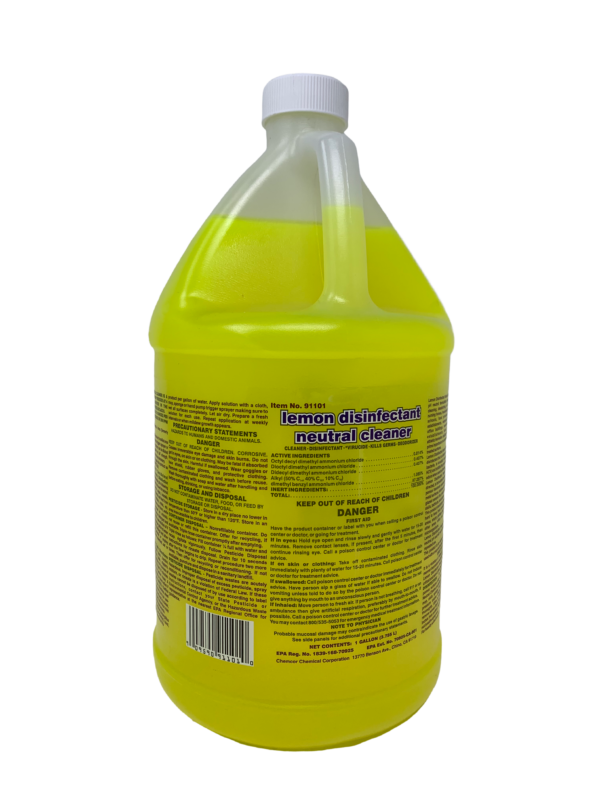 One step disinfectant and germicidal cleaner and deodorant. for use on all washable surfaces involved in institutional and commercial sanitation requirements and maintenance programs. this quat based product functions effectively as a pseudomonacidal, staphylocidal, salmonellacidal, bactericidal, fungicidal, mildewstatic and virucidal cleaner. effective against the following pathogens: hiv-1 (aids virus) , pseudomonas aeruginosa, staphylococcus aureus, eacherichin coli, salmonella choleraesuis. excellent for use in nursing homes, clinics, hotels, restrooms and u.s.d.a. processing plants. disinfecting e.p.a. reg. u.s.d.a. approved yellow